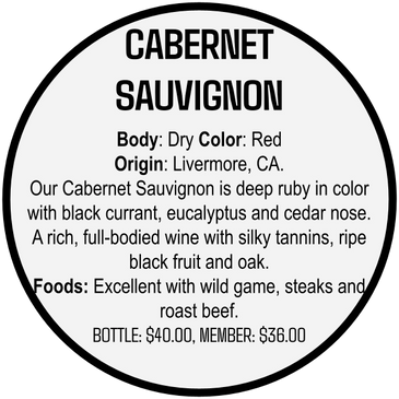 Our Cabernet Sauvignon is deep ruby in color with black currant, eucalyptus and cedar nose. A rich, full-bodied wine with silky tannins, ripe black fruit and oak.