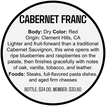 Lighter and fruit-forward than a traditional Cabernet Sauvignon, this wine opens with ripe blueberries and raspberries on the palate, then finishes gracefully with notes of oak, vanilla, tobacco, and leather.