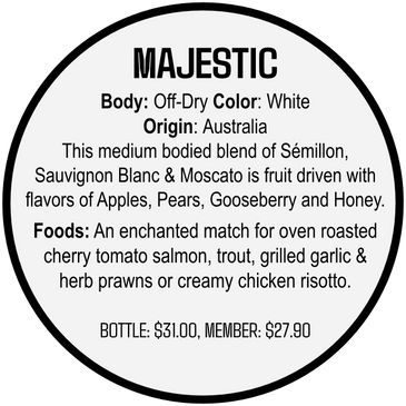 This medium bodied blend of Sémillon, Sauvignon Blanc & Moscato is fruit driven with flavors of Apples, Pears, Gooseberry and Honey.
