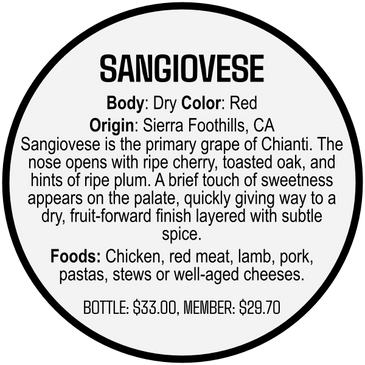 Sangiovese is the primary grape of Chianti. The nose opens with ripe cherry, toasted oak, and hints of ripe plum. A brief touch of sweetness appears on the palate, quickly giving way to a dry, fruit-forward finish layered with subtle spice.