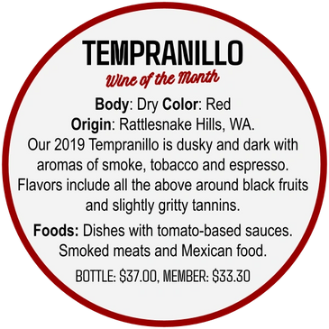 Our 2019 Tempranillo is dusky and dark with aromas of smoke, tobacco and espresso. Flavors include all the above around black fruits and slightly gritty tannins.